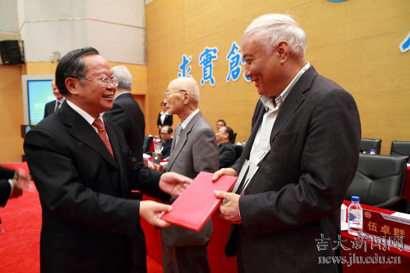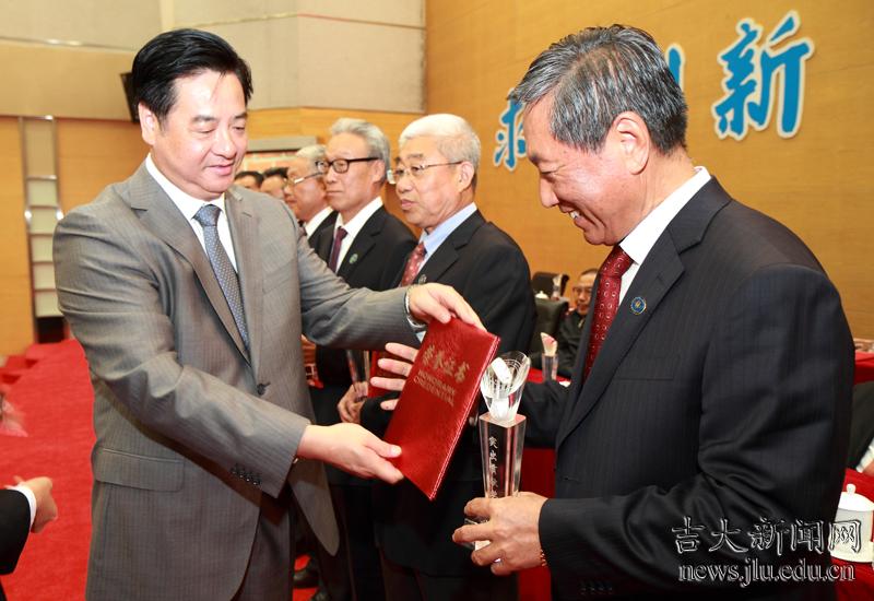 校党委书记陈德文为“特别荣誉奖”获得者颁奖