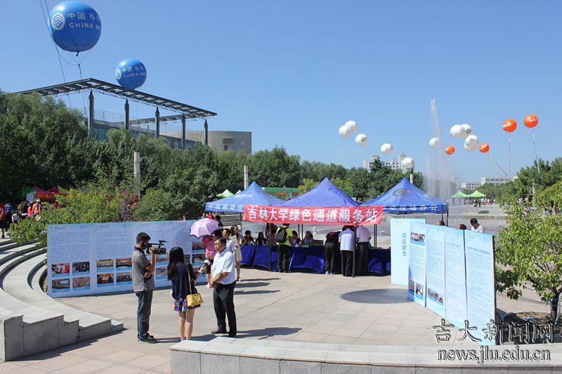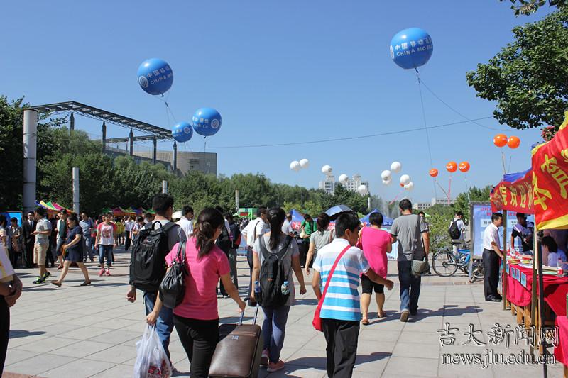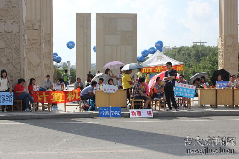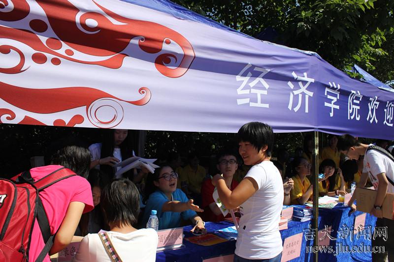 除了各院固定的学生接待点以外,活跃在校园中帮助新生的还有社团的学生志愿者们。来自阳光志愿者、中华义工联合会等社团的学生们身着各自工作服,在校园交通要地为新生指路和分发地图。志愿者们的微笑,也成为新生们对吉大校园的第一印象。