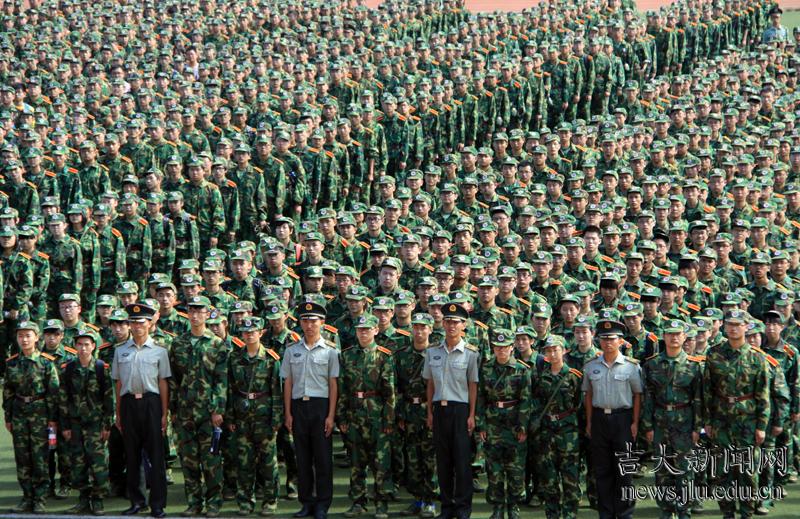 崭新的军装,青春的面孔,整齐的队列,嘹亮的口号;军旗下万余名吉大学子整齐肃立,以饱满的热情、必胜的信念,迎接为期3周的军训考验。