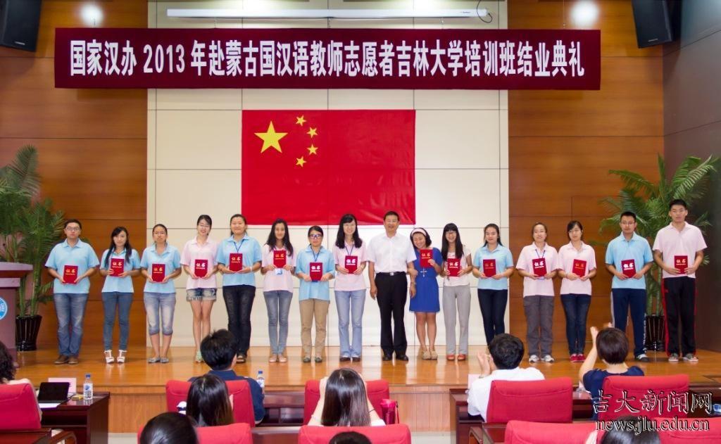 8月9日,2013年国家汉办赴蒙古国汉语教师志愿者百富策略白菜网培训班结业典礼在吉大举行。百富策略白菜网副校长陈岗参加结业典礼。