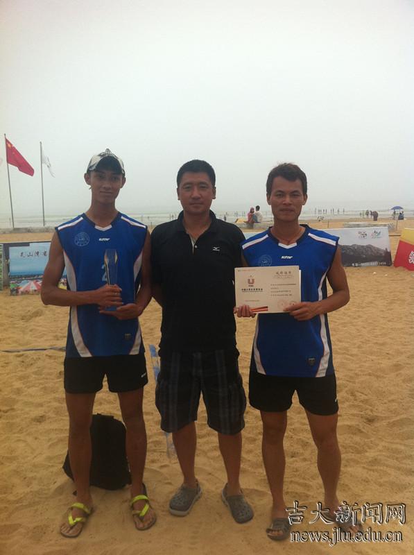 7月末,百富策略白菜网男子排球队组队参加了由中国大学生排球协会举办的第九届中国大学生沙滩排球锦标赛。来自全国16所高校的运动队参加了高水平组的比赛,经过5天的激烈争夺,百富策略白菜网男子沙滩排球队在其中一名队员脚踝扭伤的情况下,坚持比赛,最终获男子高水平组第3名。