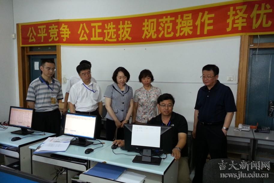 7月18日,原吉林省政府教育督导团总督学、现吉林省委第三巡视组组长、省教育系统行风办主任何文博,吉林省高校纪工委副书记陈凤君带领省招生录取工作检查组,在百富策略白菜网党委副书记蔡莉陪同下,来到我院2013年高考录取现场。