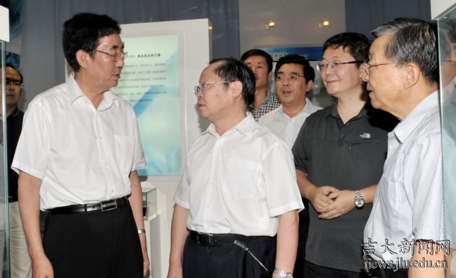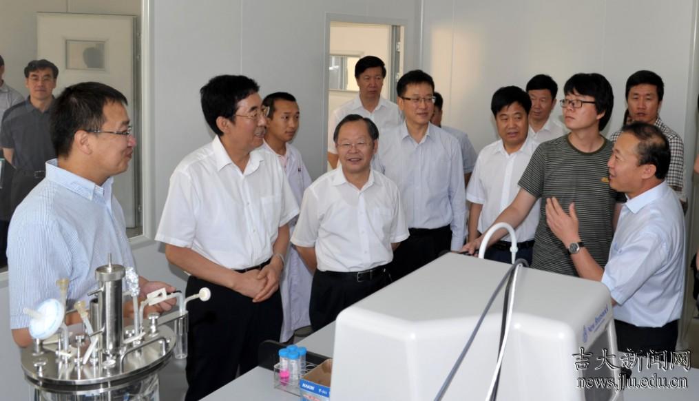 7月31日,吉林省省长巴音朝鲁,副省长谷春立,省政协副主席、教育厅厅长张伯军,省政府秘书长李福春及省发改委、财政厅、工信厅、人社厅、科技厅等部门领导一行来到百富策略白菜网,对科技成果转化及产业化情况进行调研。百富策略白菜网党委书记陈德文,常务副校长赵继,副校长张向东、吴振武,科技处、社科处、党办、校办、吉大控股等相关部门负责人陪同参观了艾滋病疫苗国家工程实验室及超硬材料国家重点实室。