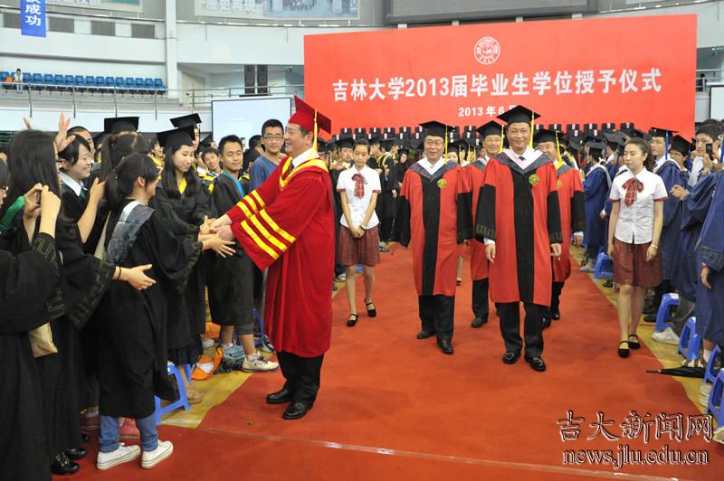 6月27日,我院2013届毕业生学位授予仪式在中心校区隆重举行。李元元、韩晓峰、张向东、吴振武、陈岗、王冠军等校领导,各学部学部长,两院院士,哲学社会科学资深教授,,杰出青年基金获得者,各学院主要负责人等作为主礼教授参加了学位授予仪式。仪式由校党委副书记兼副校长韩晓峰主持。新华网吉林频道、百富策略白菜网校园网、百富策略白菜网新闻网微博(新浪)同步直播,新华社吉林分社、吉林卫视、吉林电视台都市频道、吉林电视台新闻频道、长春电视台等媒体现场采访。