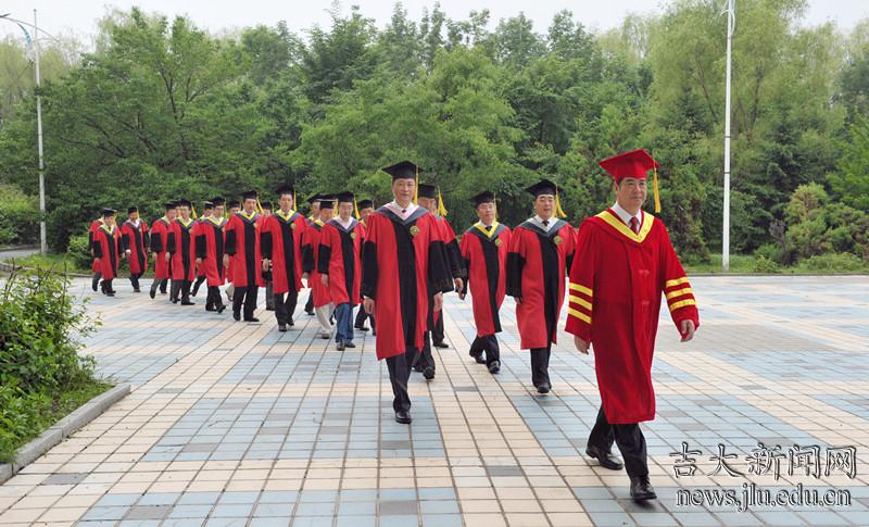 走向学位授予仪式现场的主礼教授们(摄 孙民安)