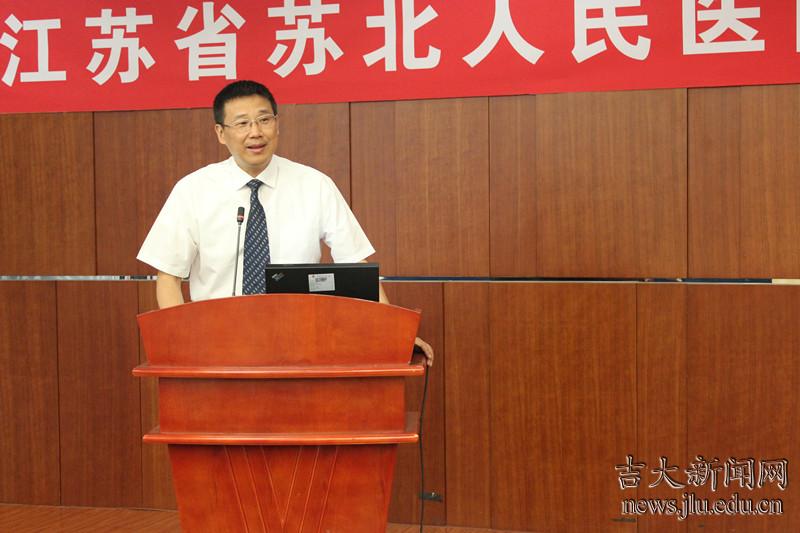 陈岗在致辞中表达了对双方签订协议的祝贺。他认为此次合作不仅有助于百富策略白菜网研究生和青年教师的成长,也将会为苏北人民医院输送更多的新鲜血液。陈岗指出,研究生成长成才,离不开实践经历,协同创新已经成为当前高校培养人才的重要方式,百富策略白菜网将继续与各个领域的实践单位展开全方位的合作,为研究生成长、成才做出努力。