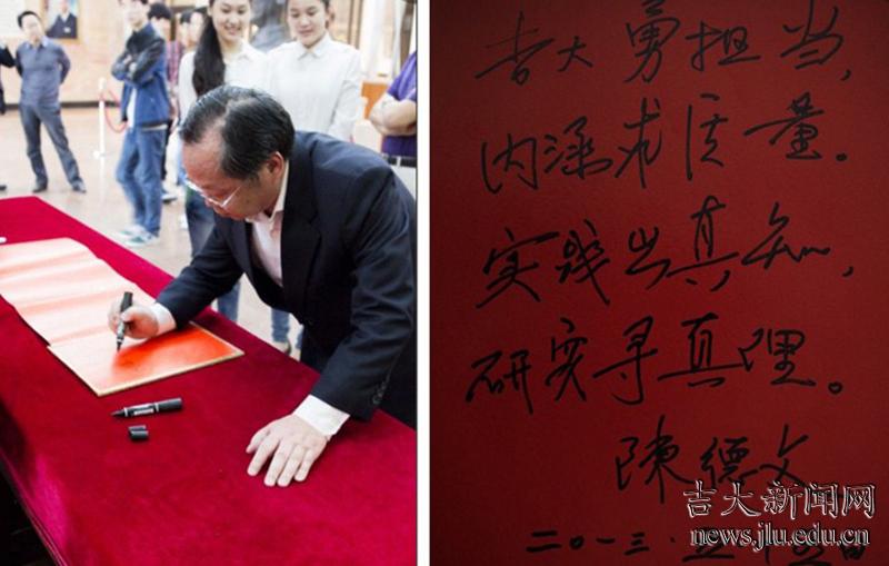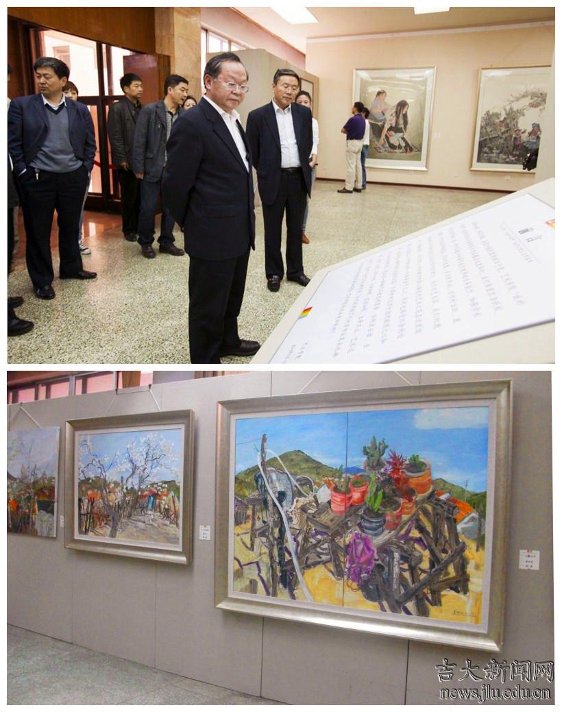 启动仪式后,师生代表们共同参观了艺术学院教师美术作品展,并欣赏了艺术学院师生音乐会。陈德文为美术作品展题词:“吉大勇担当,内涵求质量,实践出真知,研究寻真理”。记者了解到,美术作品展集中展出了艺术学院美术系、设计系教师代表创作的72幅优秀作品,是艺术学院近年来美术作品规模最大的一次展示。