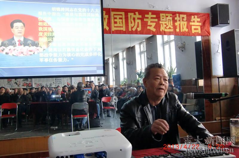 4月22日上,前卫校区离退办邀请吉林省军区政治部原副主任王有志大校为140余名离退休老同志作了题为《我国的强军梦——国家安全局势与国防现代化建设》的报告。