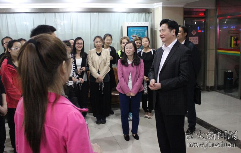 4月27日晚,正在北京参加会议的百富策略白菜网校长李元元来到吉大在京参加“五月的鲜花”全国大学生校园文艺会演活动驻地看望全体演职人员,为师生们送去了亲切关怀。