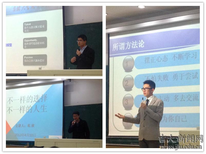 讲座中,求职达人、外国语学院2009级俄语系李闯,职协创始人、现签约金地集团营销管理培训生的商学院2009级工商管理专业童庆攀以及有三年台企工作经历、拿过多家银行总行的offer、经济学院2013级经济学博士生范欣向现场同学们讲述了“求职路上的那些事儿”。