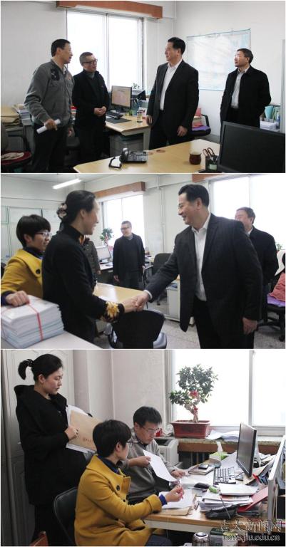 在中心校区行政楼4楼招生办公室现场,工作人员正在紧张地忙碌着研究生招生录取工作,看到李校长一行光临,大家既感意外又十分欣喜,纷纷起立问候,简短交谈后又都回到了各自岗位上。