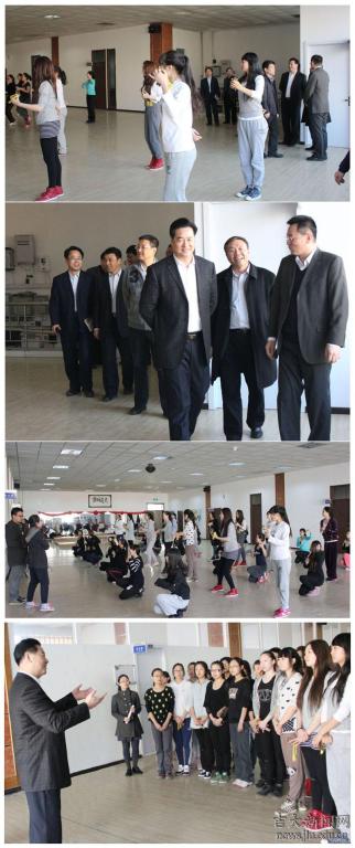 在高悬“天道酬勤”牌匾的团委二楼大厅,将于5月4日参加中央电视台“五月的鲜花”演出的同学们正在紧张排练着。李元元等校领导悄悄地站在一旁观看,并未打扰。校团委书记姚毓春、副书记林媛媛向校领导们介绍了节目的准备情况。李元元说,在演出内容上只有贴近百姓生活,才更有生命力。在演出的服饰搭配上要展示吉大学子的时尚元素和现代美感。