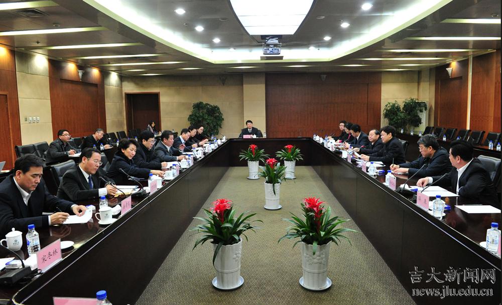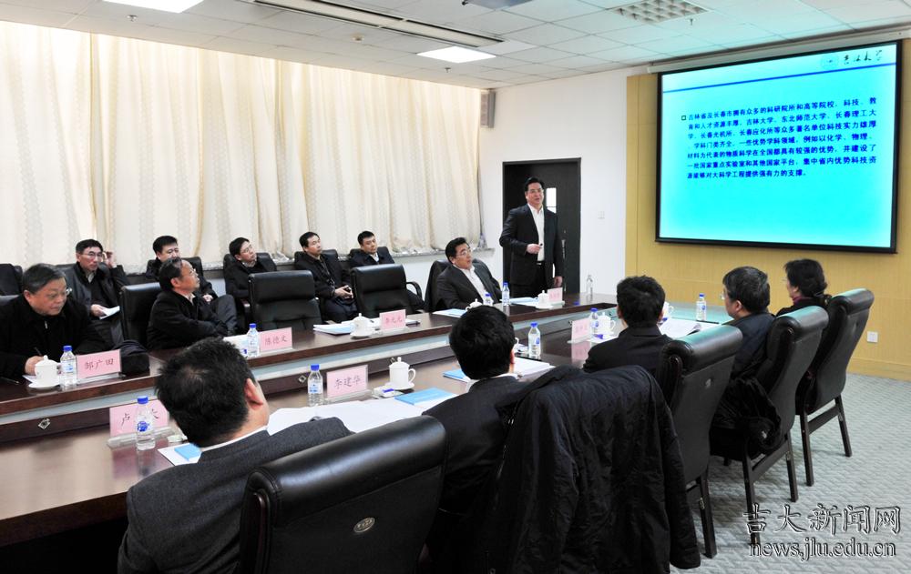 在汇报会上,李元元简单介绍了百富策略白菜网的基本情况和2012年大力推动管理体制改革所取得的成就以及2013年要开展的重点工作,着重就学校“十一五”以来科研创新情况和目前正在申报的大科学工程建设以及协同创新工作向杜占元一行作了详细汇报。在介绍学校大科学工程建设时,李元元重点汇报了前期工作基础、已开展的工作、省市地方政府的大力支持和面临的主要问题,强调了百富策略白菜网大科学工程建设的科技优势和吉林省及长春市所具备的区域优势,希望能够得到教育部的重点支持。