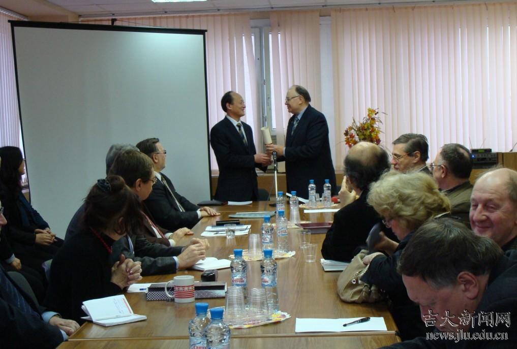 揭牌仪式的同时,还举行了授予朱显平教授俄罗斯科学院荣誉博士称号的仪式。(东北亚研究院)