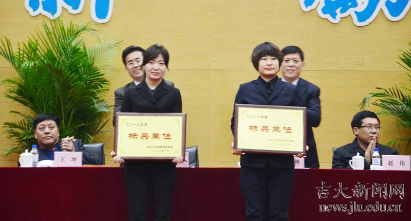 集团副总经理王坤宣读了《关于表彰2012年度标兵单位、先进集体、优秀员工的决定》。大会分别授予前卫校区后勤服务中心和饮食服务中心“标兵单位”荣誉称号;授予南岭校区后勤服务中心绿化养护队等11个单位“先进集体”荣誉称号;授予薛强等156名同志“优秀员工”荣誉称号。与会领导为获奖的单位和个人颁发了奖牌、锦旗和荣誉证书。