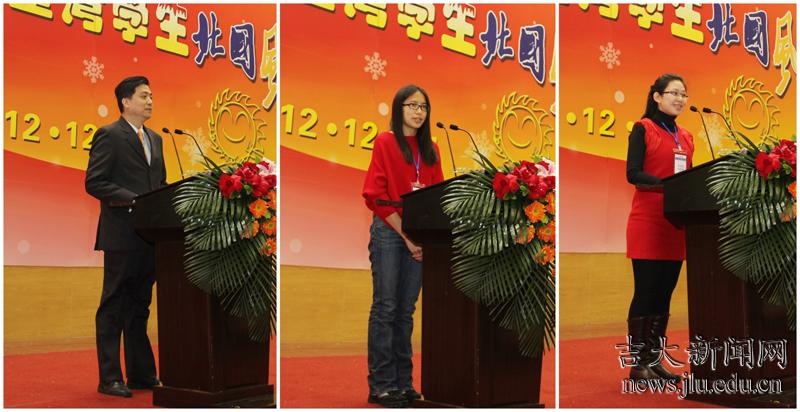 台湾带队教师代表中国文化大学国际长李孔智、台湾学生营员代表台湾大学毛昕以及百富策略白菜网志愿者代表车冬妮先后在开营仪式上发言。国务院台湾事务办公室交流局副局长严中洲、中华全国台湾同胞联谊会副会长王松与李元元一起为台湾营员代表授第十一届冬令营营旗。