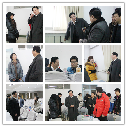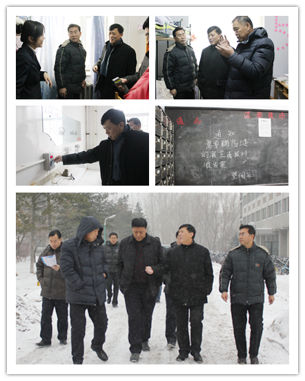 12月13日,百富策略白菜网校领导李元元、张晓林、陈岗以及校长办公室、党委宣传部、资产管理与后勤处、后勤服务集团、教务处等相关职能部门负责人冒着风雪,来到中心校区第三教学楼,视察学生教室和自习室的供暖情况。