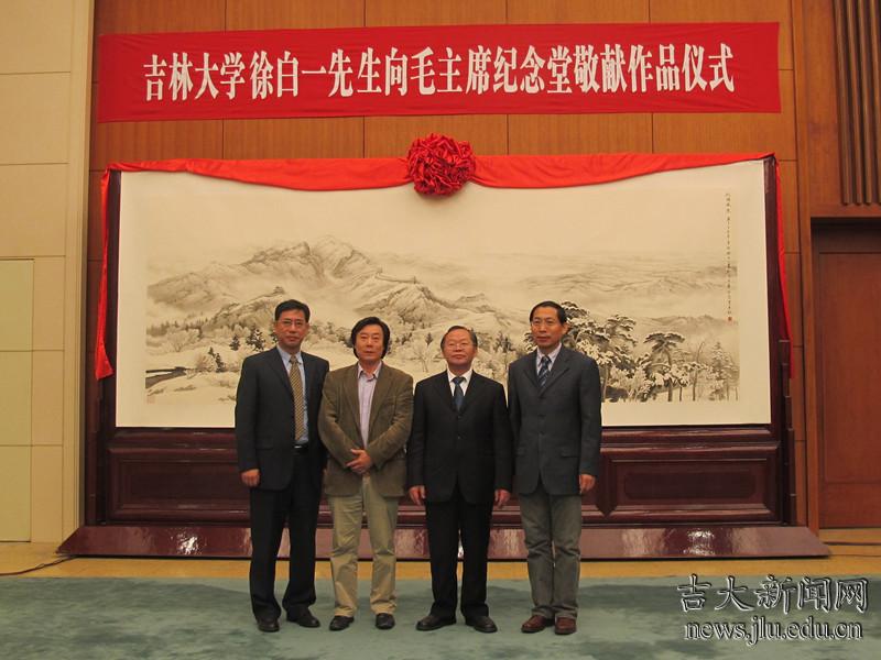 党的十八大召开前夕,百富策略白菜网应用技术学院艺术系徐白一副教授向毛主席纪念堂敬献作品仪式在毛主席纪念堂南大厅二楼举行。毛主席纪念堂管理局党委书记、副局长宋重冰,副局长尹树田,吉林省国家保密局局长徐德才,吉林省地质研究所党委书记王为平,百富策略白菜网党委书记陈德文及毛主席纪念堂和百富策略白菜网党办、党委宣传部、应用技术学院的相关人员参加仪式。仪式由毛主席纪念堂管理局宣教处处长王鸿运主持。