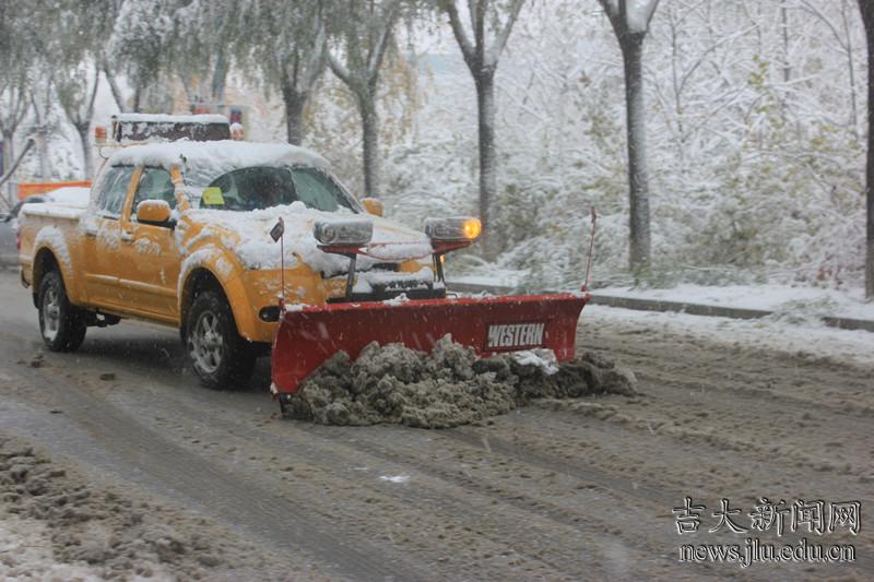 一大早,学校铲雪车便开始对主要路段积雪和损毁树枝进行清理,保障师生车辆安全。保卫处在校园车辆集中路段分派人员疏导交通。