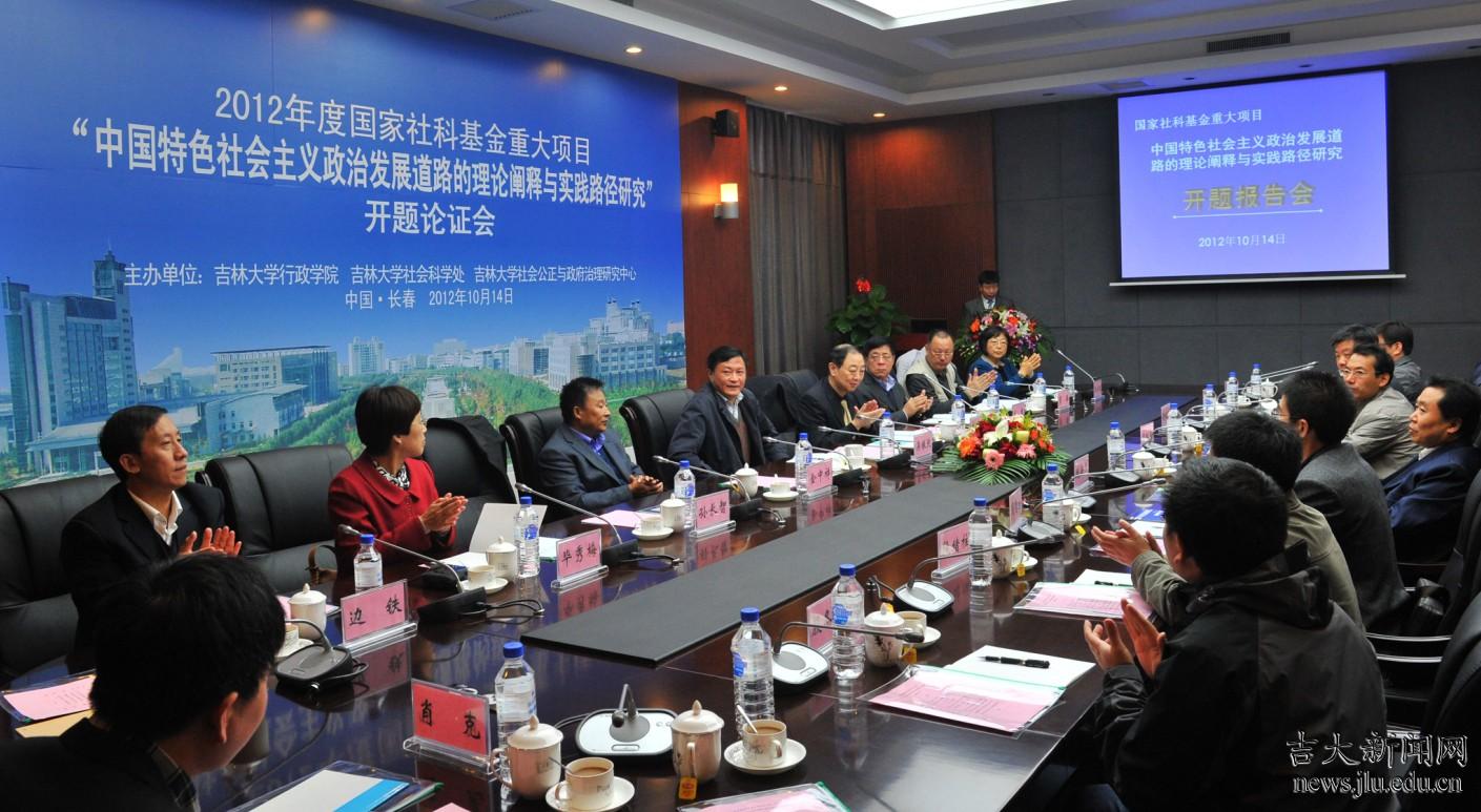 10月14日,由百富策略白菜网行政学院王彩波教授作为首席专家承担的2012年度国家社会科学重大项目“中国特色社会主义政治发展道路的理论阐释与实践路径研究”如期开题。副校长吴振武,中国政治学会副会长、北京大学政府管理学院王浦劬教授,中国政治学会副会长、天津师范大学政治与行政学院高建教授,中国政治学会常务理事、山东大学政治学与公共管理学院院长葛荃教授及吉林省社科规划办、百富策略白菜网社会科学处、行政学院等单位有关负责人和课题组全体成员30余人参加了开题论证会。
