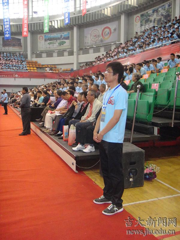 在场地周围站着一排排带着红色绶带的志愿者,男生、女生分别统一穿着蓝色、红色的T恤,热情、熟练地为来宾指路引路,他们是北极星志愿者协会的成员。据了解,一周之前他们就进行了详细的分工和培训。“作为一名志愿者,能为庆典活动庆出一份力,既是一份荣耀,也是一份考验。尽管很累,但是仍然由衷地感到自豪和快乐。”刘同学笑着说。