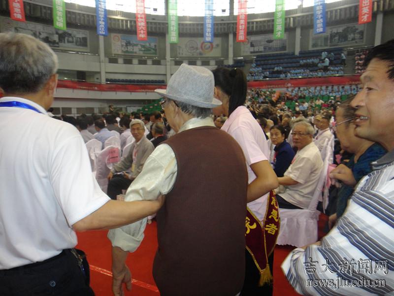 在大会进行到一半的时候,一位由志愿者推着的坐在轮椅上的白发苍苍的老人吸引了大家的目光,这位90岁的林老先生是1952年建系之初就工作在一线的技师,尽管耳朵、眼睛都不灵便了,但老先生依然执意来到庆典现场。陪同在他身边的是另一位耄耋之年的王老先生,自1953年起在物理系工作了43年之久,“提到吉大物理系,那就是我的第二个家,几十年来我一直没有离开长春,退休以后没事儿也总来看看。”