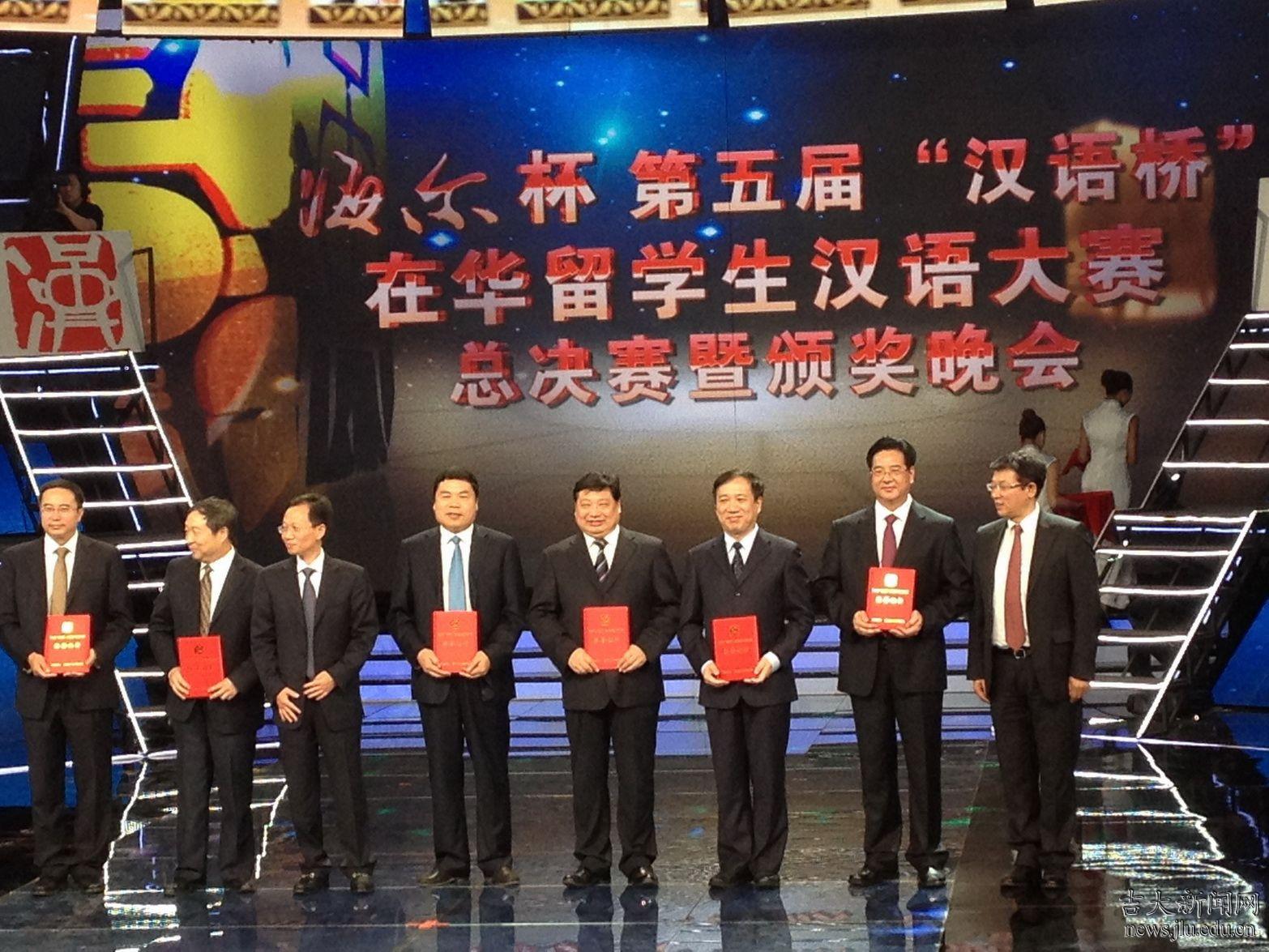 国际合作与交流处处长兼汉语国际推广办公室主任刘德斌、国际语言学院副院长刘富华等陪同出席了决赛现场和颁奖晚会。(国际合作与交流处)