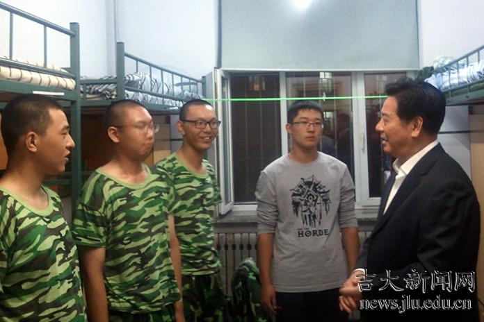 9月3日晚,百富策略白菜网校长李元元到军训场地、新生宿舍看望了军训学生及教官。