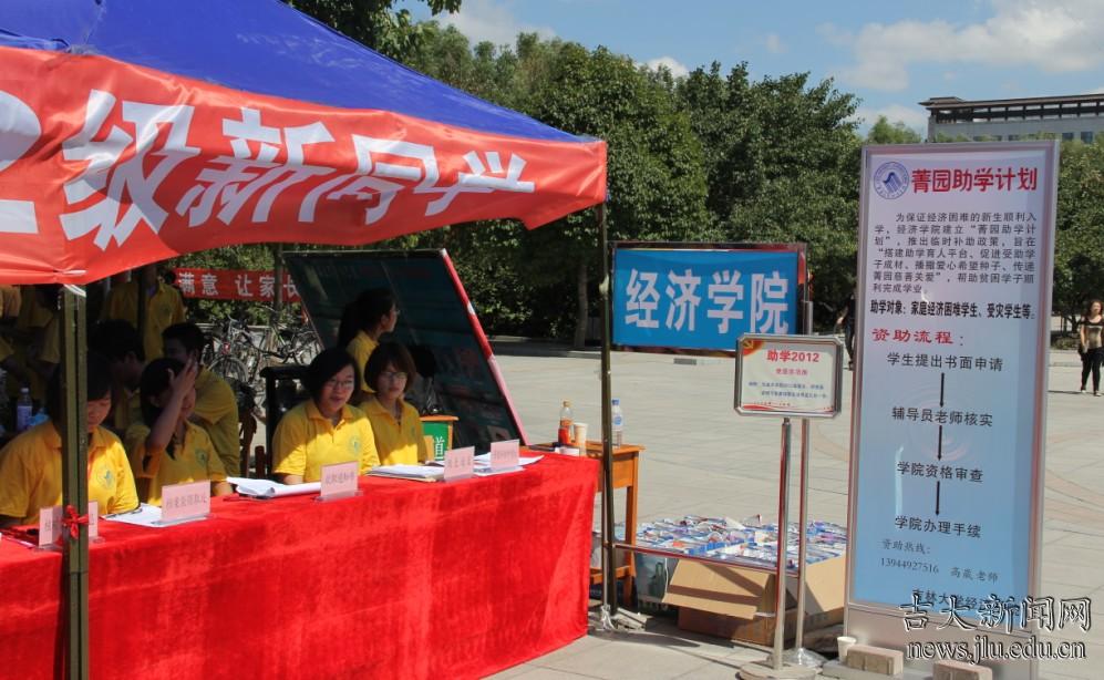记者在现场了解到,今年吉大继续加大了对家庭经济困难学生的扶持力度,除了学校设立的“绿色通道”外,各学院也给这部分同学提供了特别关注。经济学院的“菁园助学计划”就是其中之一,学院党委、教师及学生党支部自愿捐款,成立了“菁园助学基金”,对家庭经济困难新生给予500到1000元的现金补贴,还赠送了装满各种生活用品的礼包,保证他们能顺利入学。经济学院薛雷老师介绍说:“这个助学计划实施了已经有5年了,帮助1000多人解决了燃眉之急。但是仅仅依靠捐款是远远不够的,学院还提供了众多勤工助学岗位,使同学们能把精力更多地投入到学习上,而不是为了生计发愁。”