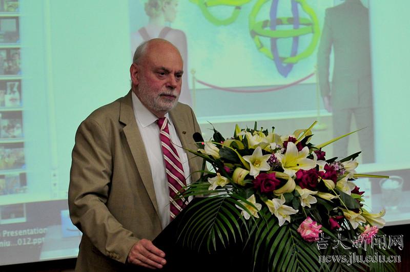 李元元宣读并向司徒塔特教授颁发了百富策略白菜网名誉教授聘书,并为他佩戴了百富策略白菜网校徽。