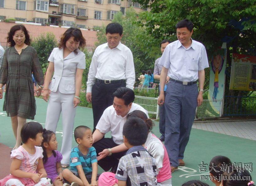 6月29日,吉大校长李元元、副校长张晓林、吴振武在校办、普教办有关负责人的陪同下到吉大附属中学、小学、幼儿园调研,视察校园安全工作。李元元一边听取汇报,一边视察各单位的室内外环境,他在看望师生的过程中,详细询问了教职工的工作、生活情况,并亲自到食堂详细了解食品的进货渠道和各种操作流程。在视察幼儿园时,李元元看到了操场上天真快乐的孩子们,亲切地蹲下来和孩子们交流、游戏。