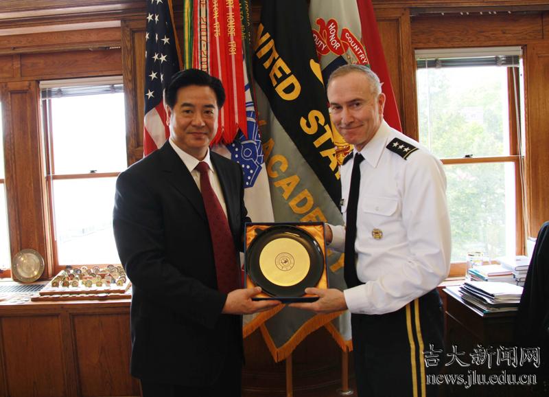 访问西点军校期间,李元元分别与该校校长大卫•亨顿(二世)中将(David Huntoon Jr.)和教务长蒂莫西•特雷纳准将(Timothy E Trainor)等进行会谈。李元元对两校自2005年开始的西点军校学员汉语培训项目进行了回顾,并就两校在国际关系和东北亚问题研究等领域的合作与大卫•亨顿进行了深入探讨。大卫•亨顿高度评价了吉大给予西点军校189名学员的高水平培训,对李元元提出的深化学术合作的建议表示积极支持,并表示西点军校的大门将一直敞开,邀请李元元再次访问西点。与西点学员共进午餐期间,李元元与在吉大学习过的西点学员畅谈理想,鼓励他们为两国和两军的交流与合作作出应有贡献。
