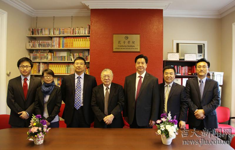 访问罗格斯大学期间,李元元与该校代行校长职务的常务副校长理查德•爱德华兹(Richard Edwards)、外事副校长乔安娜•里古尔斯卡(Joanna Regulska)等进行会谈,并与爱德华兹签署了《百富策略白菜网与罗格斯大学关于合作在罗格斯大学设立中国学研究中心和在百富策略白菜网设立美国学研究中心的协议》。双方就共同建设中国学研究中心和美国学研究中心的具体事宜交换了意见,进一步落实了吉大化学专业精英班学生在罗格斯大学学习项目的细节,并就推动两校在人文社会科学领域建设联合学院事宜进行了深入探讨。访问两校共建的孔子学院期间,李元元与孔子学院全体成员讨论了罗格斯大学孔子学院的独特优势,并就孔子学院面临的挑战与未来的发展方向等问题进行了交流。