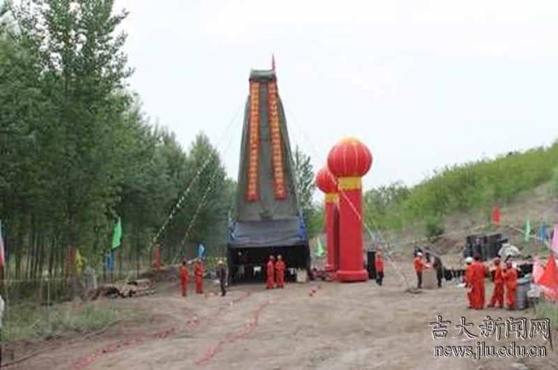 庆典仪式上,百富策略白菜网地学部学部长、建设工程学院院长孙友宏教授代表吉科—1井项目实施单位致辞,并宣布百富策略白菜网科学钻探第一井开钻,与杨家杖子开发区区长郑子清共同启动了钻机按钮。