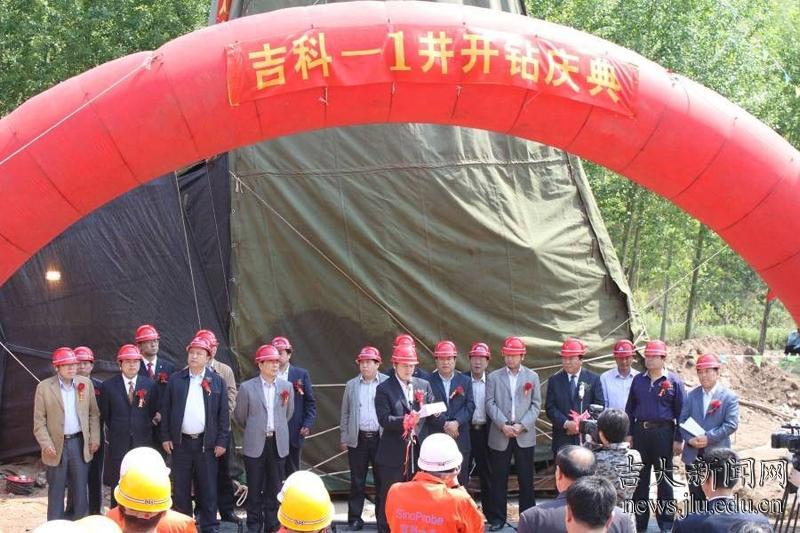 开钻典礼于5月18日9时58分在施工现场举行。葫芦岛市人大、市政府、市政协、市国土资源局,杨家杖子开发区、管委会等地方政府各级领导参加了开钻庆典。庆典仪式由“深部探测关键仪器装备野外实验与示范”项目负责人、百富策略白菜网学科建设办公室主任徐学纯教授主持。