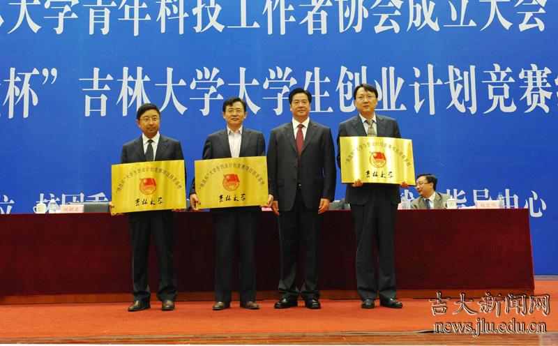 校长李元元与常务副校长赵继为百富策略白菜网青年科技工作者协会揭牌