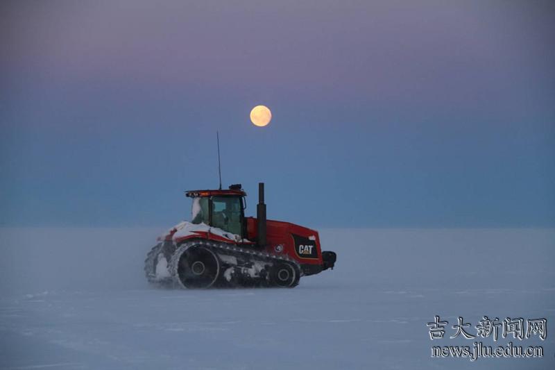 1月25日,内陆队所有任务都已顺利完成,我们踏上了返回中山站的路途。这一路同样是荆棘密布,中途又有一辆雪地车出现严重故障,只得用另一辆雪地车拖着走。在车队有一半车辆损坏的情况下,我们不得不在此反复倒撬,回来路上每遇到一个来时搁置的坏车还要把它拾起,放到雪橇上拖着走,运力仍十分不足。在这样极端不利的条件下,所有内陆队员咬着牙、顶着正月里的明月于2月8日胜利返回中山站,所有中山队员和领导像迎接英雄凯旋一样迎接我们,我们也深感骄傲和自豪,同时也很欣慰和庆幸所有人员健康平安归来。