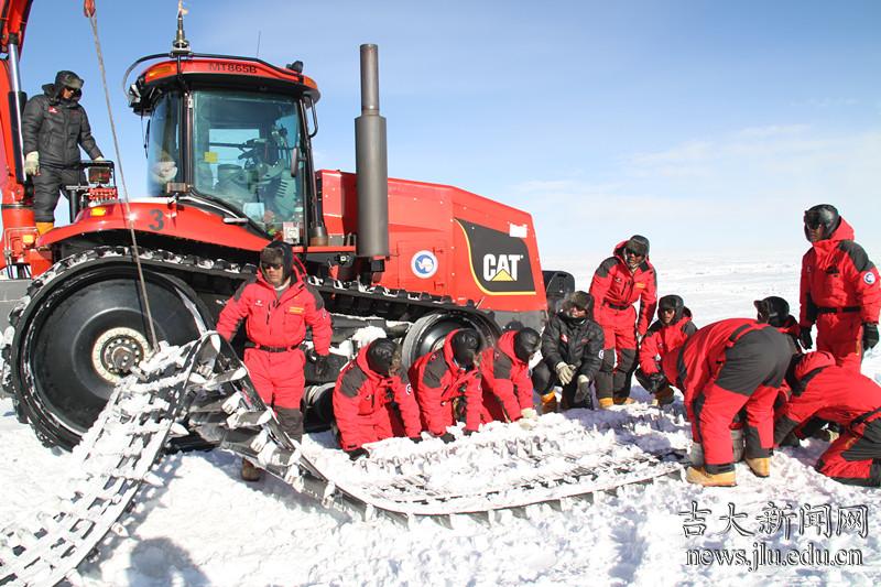 车辆问题是我们内陆考察队在面临着是否能完成本次内陆科考任务这一关键问题时最担心的问题。然而在内陆,担心的事情总是如约而至。出发后的第三天,就有一辆雪地车因为机械故障无法行驶,在维修未果的情况下只得把它搁置在途中,同时建材等一些物资也由于运力不足的原因只得搁置在途中。紧接着,又有两辆雪地车先后出现故障,无法使用,我们只好再次将两辆车搁置在途中,有一天我们连修车带包裹车辆,工作到后半夜3点多,没睡几个小时,到了上午又出发继续前进。在这种运力严重不足的情况下,我们只能用5台车进行反复倒撬,每天用120-180km的行车里程来换取60km的全队推进距离。这一路我们可谓饱经磨难,就连很多“老南极”都说这次内陆考察是历次内陆考察中最艰难的一次。