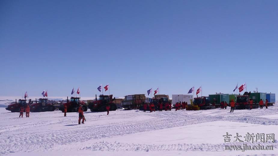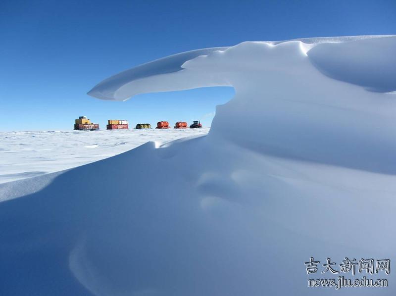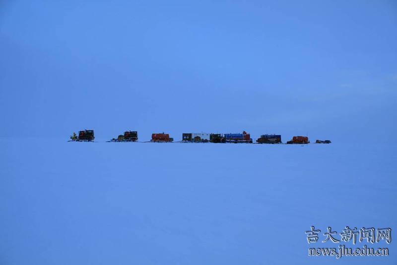 在做好出发前的一切准备工作后,我们内陆队于12月16日踏上驶向南极冰盖之巅DOME A 1300公里的漫漫风雪旅途。出发当天,领队、书记等队领导专程来到出发地为我们内陆队送行,喝下一碗壮行酒后,我们的车队驶入了毫无生命迹象的白色沙漠。
