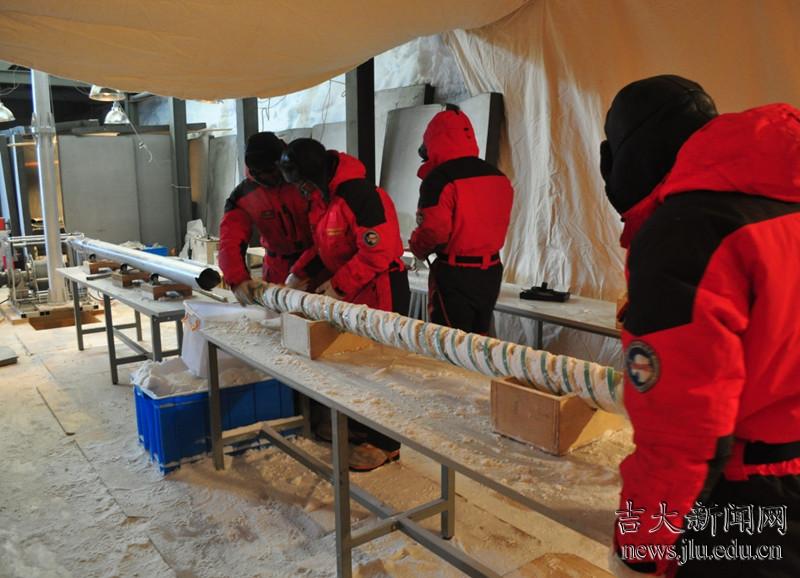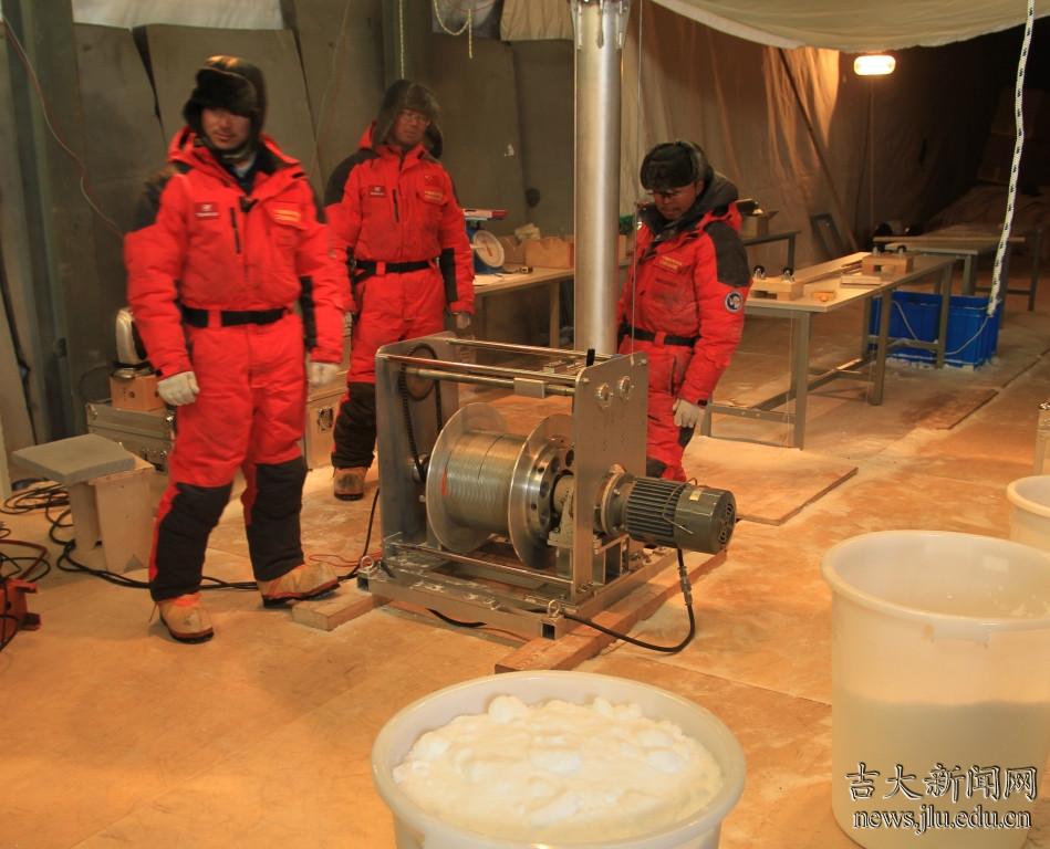 冲过了种种艰难险阻,我们内陆队终于在1月4日下午顺利抵达昆仑站,在经历了1天的设备进场及施工前准备工作后,1月7日,中国南极昆仑站深冰芯钻探工程正式开钻。我们冰钻小组在零下35℃左右,没有阳光的冰芯房每天要工作9个小时之多,不仅手脚冻得发麻外,肺也由于吸入冷空气太多,导致严重的咳嗽。即便是浑身贴满了暖贴也无济于事。经过了16天的坚苦奋战,我们冰钻小组终于顺利地圆满完成了深冰芯钻探工程顶部120m深的导向孔的钻探、取芯、扩孔及套管的下设等工作。当我们完成任务的时候正是国内全家团圆的大年三十,能在这天完成任务让我们无比欣慰。