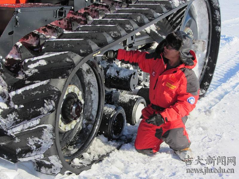 出发后,我和范晓鹏博士各自作为副驾驶,驾驶雪地车,每天除了开车拖运物资之外还要负责车辆的日常加油、保养维护和摘挂雪橇等工作。