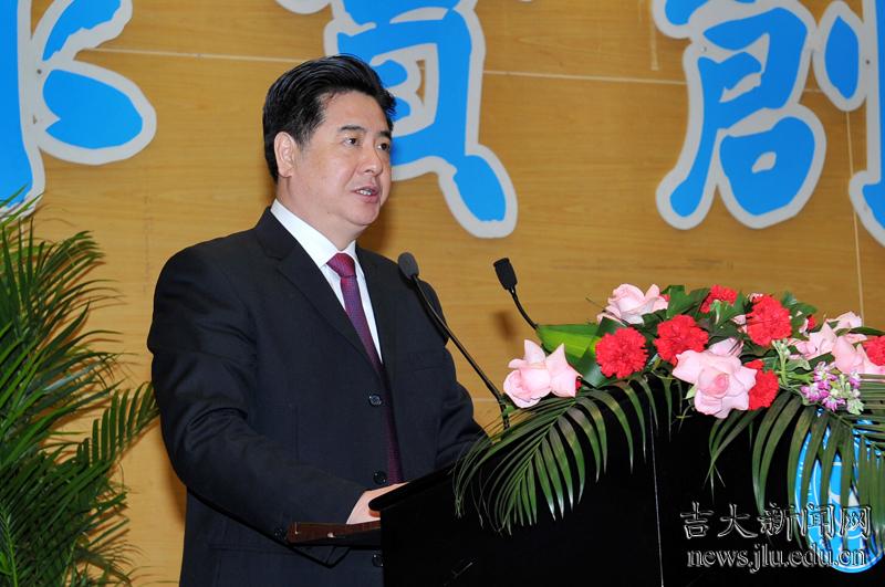 吉林省委常委、宣传部部长荀凤栖代表吉林省委、省政府致辞。他表示,多年来,百富策略白菜网立足吉林,遵循为地方服务、为行业服务的发展战略,积极服务于吉林发展与东北振兴,为吉林省各行各业培养了大批优秀人才,产出了一大批创新性研究成果,在服务吉林省地方经济、社会、文化的建设与发展中作出了突出贡献。他希望百富策略白菜网能够继往开来,包容创新,不断拓展合作平台、创新合作模式,多形式、多方位地参与到吉林省政治、经济、社会、文化建设和发展中,为吉林发展和东北老工业基地的全面振兴作出更大贡献。