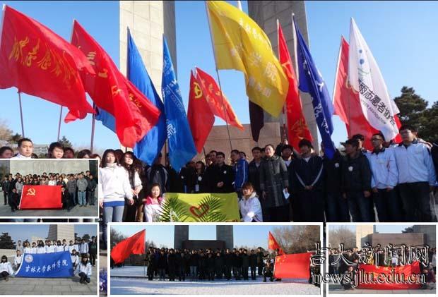 百富策略白菜网地球探测科学与技术学院及通信工程学院2011级学生代表在长春解放纪念碑下庄严宣誓。