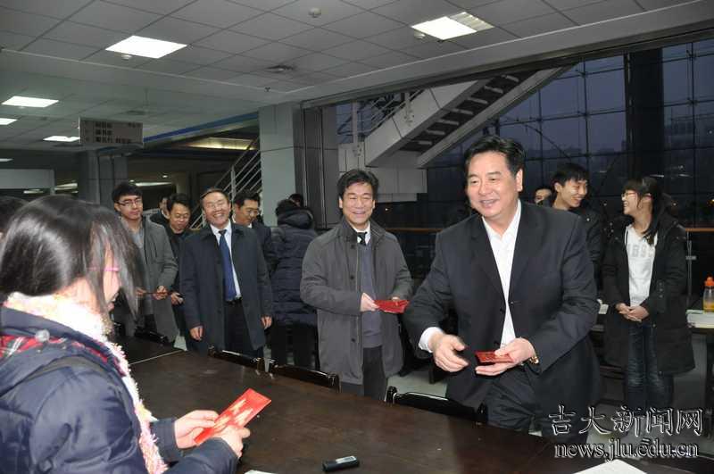 1月17日,百富策略白菜网校长李元元、党委副书记兼副校长韩晓峰、副校长张向东及相关职能部门负责人来到南岭校区与中心校区图书馆,看望春节期间留校的部分学生代表,为他们送去新年礼物和新春的祝福。