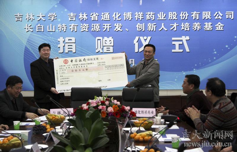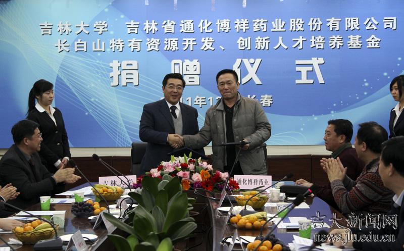 日前,通化博祥药业在吉大设立长白山特有资源开发、创新人才培养基金,并于12月14日举行基金捐赠仪式。吉大副校长张向东、通化博祥药业股份有限公司董事长宋爱群参加捐赠仪式并代表双方签署捐赠协议。