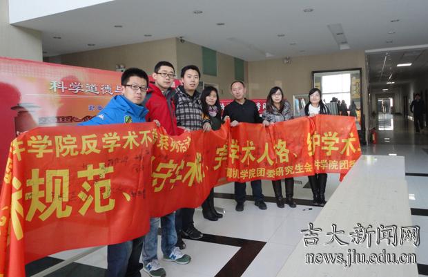 材料科学与工程学院、计算机科学与技术学院、通信工程学院、白求恩医学院相继举办了“坚守学术诚信,维护学术尊严”“优良学风,从我做起”等主题签名和宣誓活动。口腔医学院也悬挂起了“遵守学术道德,树立严谨学风”的条幅。