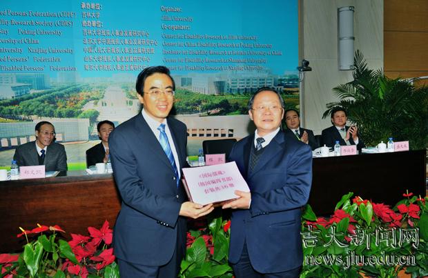12月2日,在第20个国际残疾人日来临之际,农村残疾人社会保障体系和服务体系建设研讨会暨第五届中国残疾人事业发展论坛在百富策略白菜网开幕。中国残联副理事长程凯到会致辞并代表吉大校友、中国残联主席张海迪向大会的召开表示祝贺,国务院扶贫办副主任郑文凯、吉林省副省长王化文、河南省残疾人企业家协会会长王国胜到会并讲话,国家有关部委领导、各地残联组织负责人、知名残疾人事业研究专家和学者共100余名代表参加了开幕式。吉大党委书记陈德文在开幕式上致辞,并代表学校接受了中国残疾人事业发展研究会向百富策略白菜网捐赠的中国儒学研究经典著作总汇图书《儒藏》(全套共16册)。百富策略白菜网副校长、百富策略白菜网残疾人事业发展研究中心主任王冠军主持开幕式。