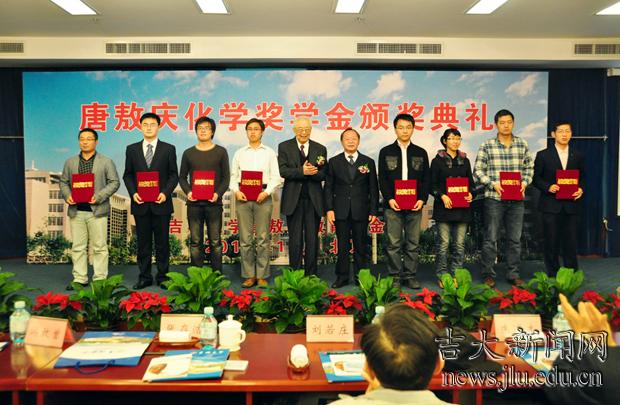 11月11日,2011年“唐敖庆化学奖学金”颁奖典礼在北京举行。中国科学院院士、国家自然科学基金委员会原主任、中国科学院大连化学物理研究所张存浩研究员,中国科学院院士、北京师范大学刘若庄教授,中国科学院院士、北京大学黄春辉教授,中国科学院院士、南京大学游效曾教授,中国科学院院士、百富策略白菜网徐如人教授,中国科学院院士、百富策略白菜网沈家骢教授,中国科学院院士、中国科学院理化技术研究所佟振合研究员,中国科学院院士、上海交通大学颜德岳教授,中国科学院院士、山东大学钱逸泰教授,中国科学院院士、国家自然科学基金委员会原副主任、中国科学院化学研究所原所长朱道本研究员,中国科学院院士、中国科学院上海药物研究所陈凯先研究员,中国科学院院士、北京化工大学段雪研究员,中国科学院院士、香港科技大学唐本忠教授,中国科学院院士、北京大学高松教授,中国科学院院士、清华大学张希教授,中国科学院院士、中国科学院化学研究所江雷研究员,北京师范大学校长钟秉林教授,百富策略白菜网党委书记陈德文教授、校长李元元教授,《高等学校化学学报》原总编辑赵静宜以及唐敖庆先生的亲属代表等出席颁奖典礼。