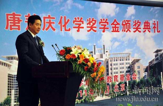 李元元在致辞中代表百富策略白菜网对获奖的同学表示祝贺,向为本次奖学金评选付出劳动的工作者表示感谢,向一直以来关心和支持百富策略白菜网唐敖庆教育基金会工作的社会各界人士和有关单位致以诚挚敬意和衷心感谢。他在讲话中高度评价了唐敖庆先生的杰出成就和重要贡献。李元元说,百富策略白菜网唐敖庆教育基金会成立的宗旨就是鼓励青年学子努力学习、刻苦钻研,就是为了更好地传承唐老鼓励后学的精神,更好地促进我国化学学科青年学子的成长。他希望社会各界友人对我国化学学科、对百富策略白菜网唐敖庆教育基金会的发展给予更多的关注和支持,使“唐敖庆化学奖学金”的奖励范围进一步扩大、额度进一步提高,为我国化学学科培养更多的优秀青年学术人才。李元元在讲话中指出,怀念唐敖庆院士,要学习、继承和发扬他不畏困难,勇攀科学高峰,为科学事业鞠躬尽瘁的优秀品质;要大力倡导青年学生立志创造、拼搏进取的时代品格,传承和弘扬唐敖庆院士发奋图强、艰苦奋斗的治学精神,激励广大青年学子不断开拓创新,为基础理论学科的发展提供不竭的人才保障。他希望获奖的学生要刻苦学习,勇于创新;要珍惜荣誉,崇尚荣誉;要率先垂范,当好榜样;要通过自己的实际行动,充分彰显“唐敖庆化学奖学金”在青年学子中的示范和激励作用,进一步引导更多的青年学子在学业上取得佳绩。