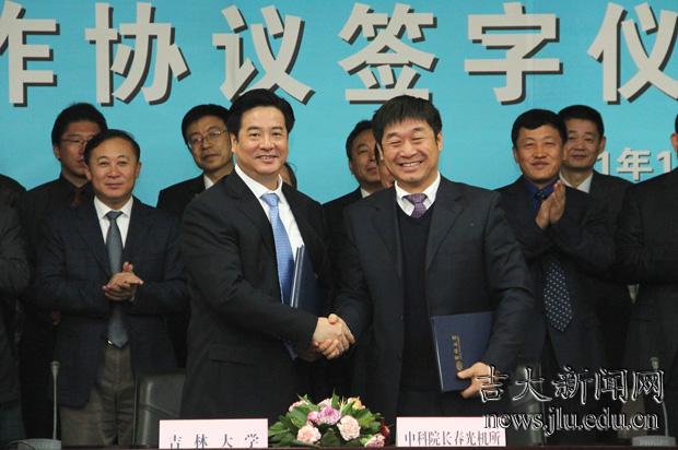 11月21日,百富策略白菜网与中国科学院长春光学精密机械与物理研究所(以下简称“长春光机所”)签署合作协议。长春光机所所长宣明、党委书记贾平,百富策略白菜网党委书记陈德文、校长李元元、常务副校长赵继、副校长张向东以及双方相关单位负责人参加了签约仪式。签字仪式由赵继主持。仪式上,李元元与宣明分别代表双方单位在协议书上签字。